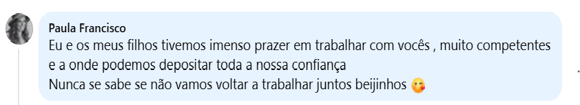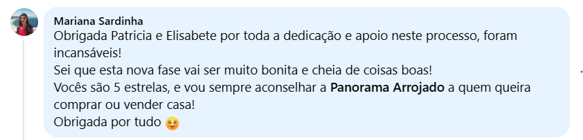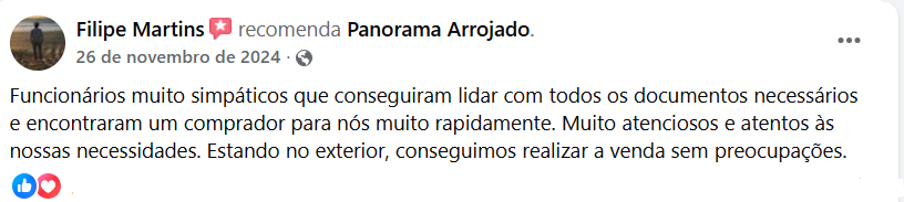 Queremos deixar um enorme agradecimento à Paula Francisco, ao Nuno Martins e ao Filipe Martins, que, mesmo residindo na Suíça, depositaram em nós toda a confiança para a venda da sua moradia em Portugal. Foi um privilégio poder trabalhar convosco e mostrar que, no nosso país, ainda existem profissionais dedicados, competentes e comprometidos com os melhores resultados.